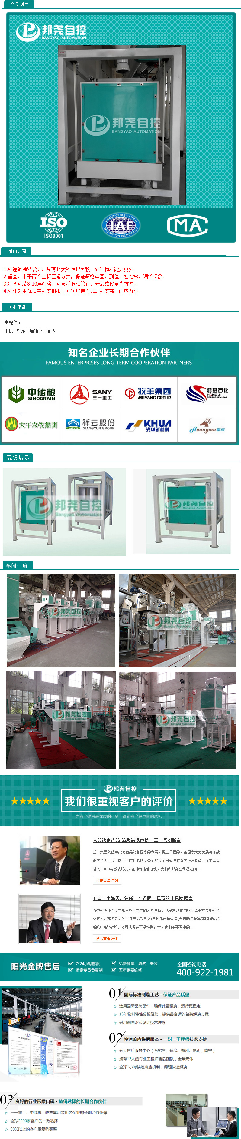 外通道獨特設(shè)計,具有超大的篩理面積,處理物料能力更強(qiáng),垂直、水平兩維坐標(biāo)壓緊方式,保證篩格牢固,到位。杜絕竄、漏粉現(xiàn)象。